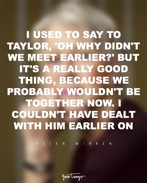 "I used to say to Taylor, 'Oh why didn't we meet earlier?' But it's a really good thing, because we probably wouldn't be together now. I couldn't have dealt with him earlier on." — Helen Mirren