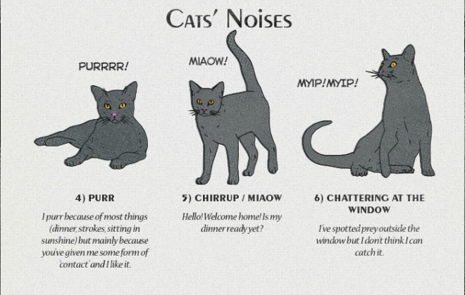 Humans are lucky. We have complex verbal and physical languages that can get across any message we feel we need to. On the other hand, cats rely on a handful of variations of their vocalizations and some physical cues to get across what they want to say.