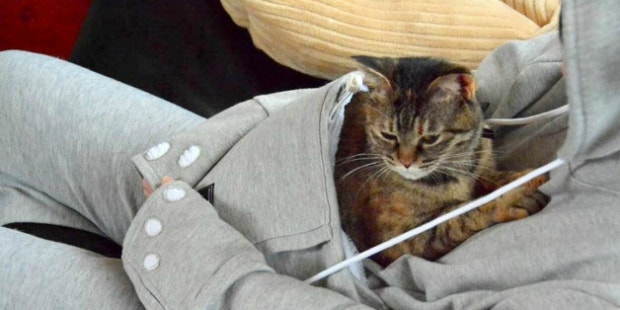 Enter the Mewgaroo Sweatshirt, a hoodie designed to give you and your pet cuddle time while also leaving your hands open for everything else.