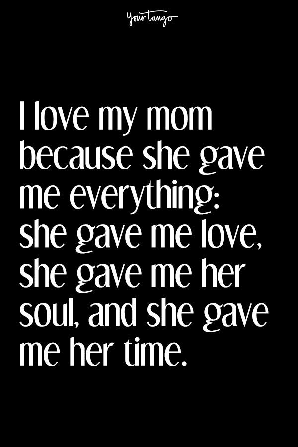 6. "I love my mom because she gave me everything. She gave me love, she gave me her soul, and she gave me her time." — Unknown