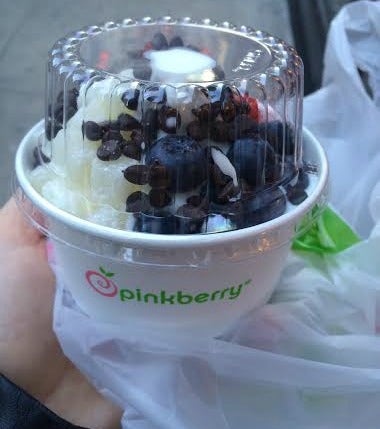 Yes, I chased my trip to Baskin Robbins with a stop at Pinkberry. Ain't no shame in my free birthday treat game. This location was particularly busy, and I had to shout to the girl behind the counter that it was my birthday a few times before she got that I was there to claim my free medium-sized Pinkberry with toppings. But the people waiting in line all wished me happy birthday, so it was all good.