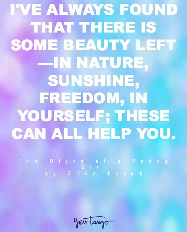 "I've found that there is always some beauty left — in nature, sunshine, freedom, in yourself; these can all help you."