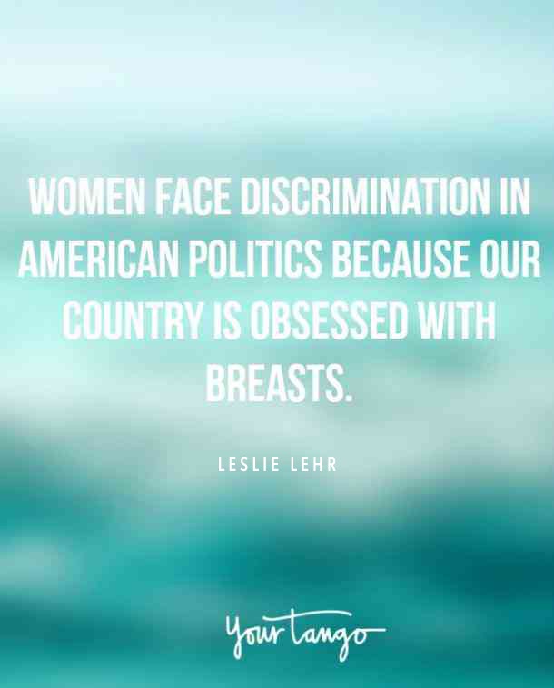 Sixty-three countries have been led by women in the last fifty years. I can't even name 63 countries. But I know why we lag so far behind. You can trace the path from America's Puritan roots to a discomfort with the female form so extreme that even in our twenty-first century, the Justice Department covered a semi- sculpture of Lady Justice with a drape. Justice? Please. Women face discrimination in American politics because our country is obsessed with breasts.