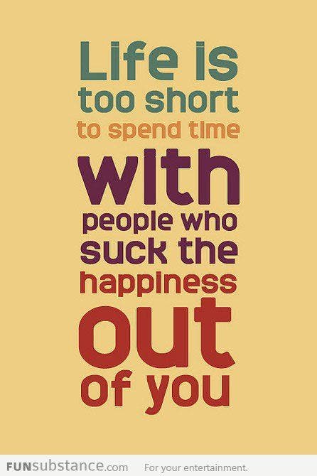 "Life is too short to spend time with people who suck the happiness out of you."