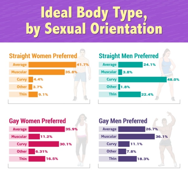 According to the survey, gay men are the choosiest, in that they prefer a man with a buffer build than average.