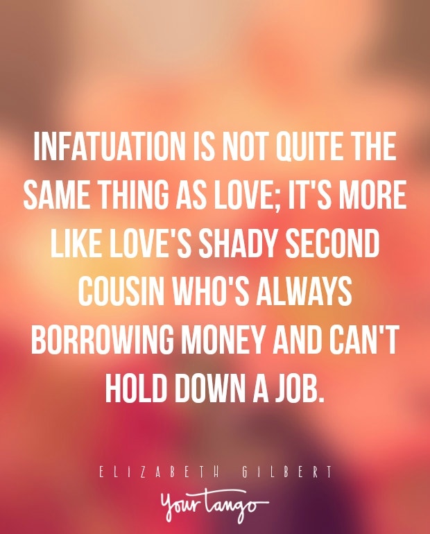 "Infatuation is not quite the same thing as love; it's more like love's shady second cousin who's always borrowing money and can't hold down a job."— Elizabeth Gilbert