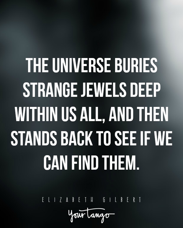 "The universe buries strange jewels deep within us all, and then stands back to see if we can find them."— Elizabeth Gilbert
