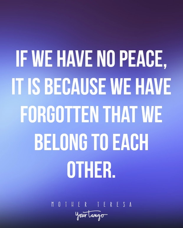 “If we have no peace, it is because we have forgotten that we belong to each other.”