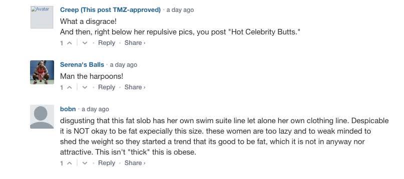 While TMZ's coverage of Ashley Graham in a swimsuit is awesome as hell, the comments are ... decidedly not so.