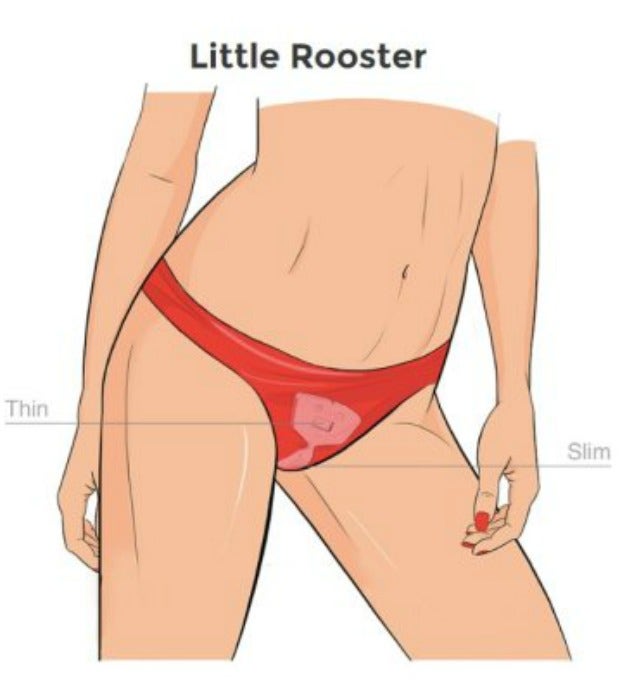 The Little Rooster kind of looks like a tiny pink shovel. There is a long piece (the handle, as it were) which you place between your labia and a flat rectangle (the head... of the shovel part) that presses up flat against your mons pubis. This is where you can see the little digital clock and set it accordingly.