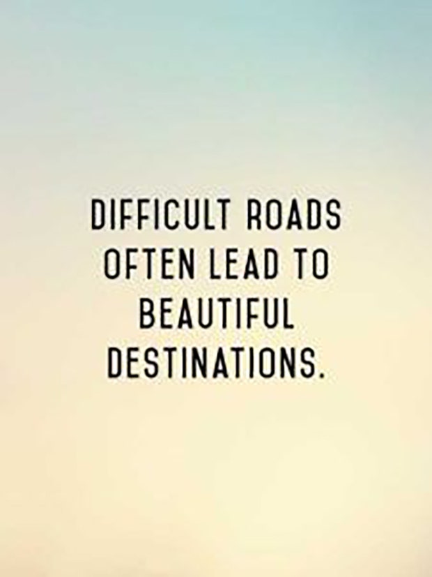 "Difficult roads often lead to beautiful destinations."