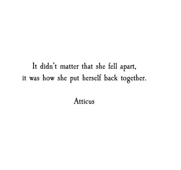 "It didn't matter that she fell apart, it was how she put herself back together." — Atticus