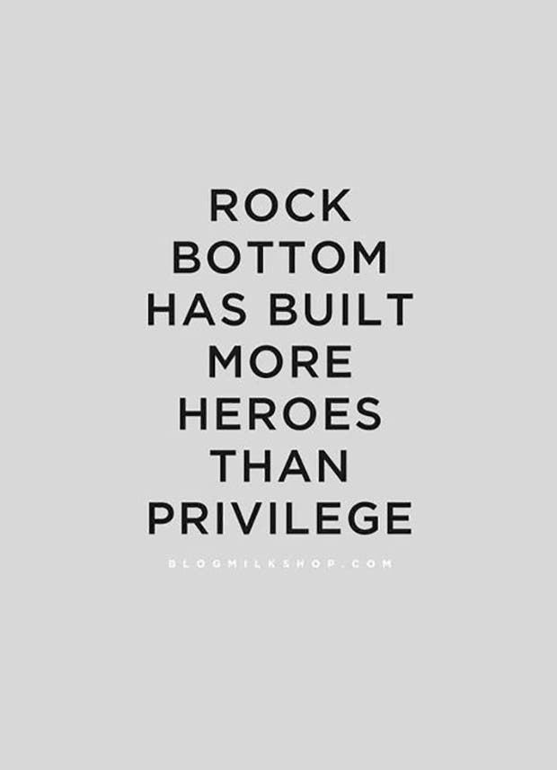 "Rock bottom has built more heroes than privilege."