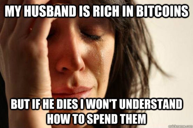 "My husband is rich in bitcoins, but if he dies then I won't understand how to spend them."