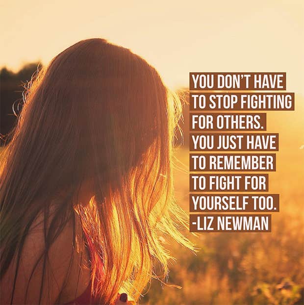 “You don’t have to stop fighting for others. You just have to remember to fight for yourself, too.” — Liz Newman