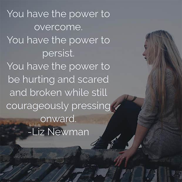 “You have the power to overcome. You have the power to persist. You have the power to be hurting and scared and broken while still courageously pressing onward.”—Liz Newman
