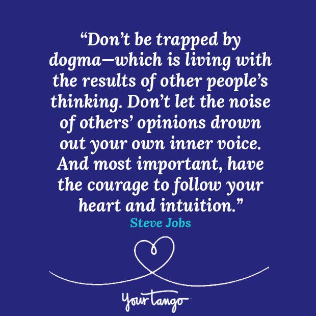 "Don’t be trapped by dogma—which is living with the results of other people’s thinking. Don’t let the noise of others’ opinions drown out your own inner voice. And most important, have the courage to follow your heart and intuition."— Steve Jobs