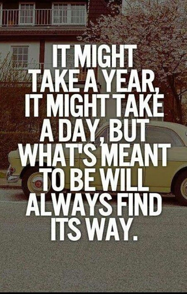"It might take a year, it might take a day, but what’s meant to be will always find its way."- Unknown