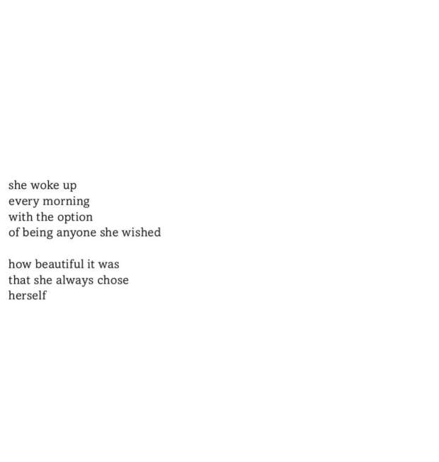 "She woke up every morning with the option of being anyone she wished. How beautiful it was that she always chose herself.” – Tyler Kent White