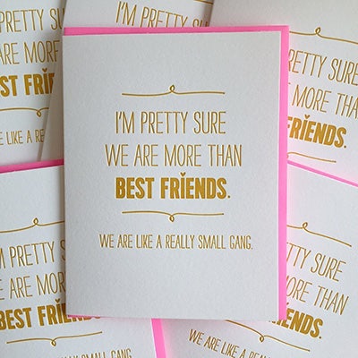 This is a cute little handmade card. Both you and your best friend make a cool mini-gang.