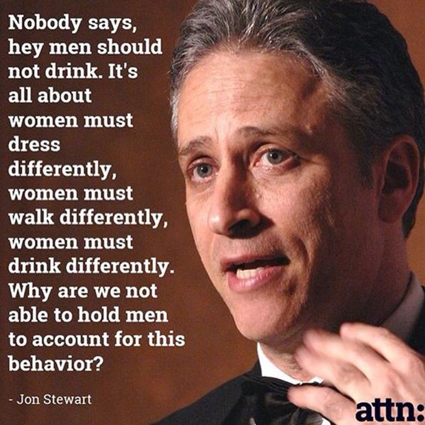 “Nobody says hey, men should not drink. It’s all about women must dress differently , women must walk differently, women must drink differently. Why are we not able to hold men to account for this behavior?” -Jon Stewart