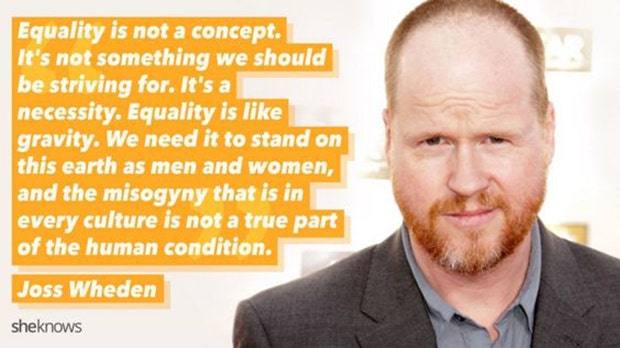 “Equality is not a concept. It’s not something we should be striving for. It’s a necessity. Equality is like gravity. We need it to stand on this earth as men and women, and the misogyny that is in every culture is not a true part of the human condition.” -Joss Wheden