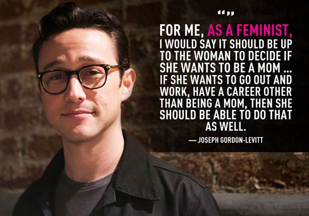 “For me, as a feminist, I would say it should be up to the woman to decide if she wants to be a mom … If she wants to go out and work, have a career other than being a mom, then she should be able to do that as well.” -Joseph Gordon-Levitt