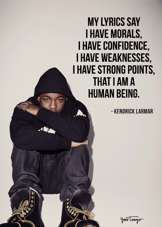 "My lyrics say I have morals, I have confidence, I have weaknesses, I have strong points, that I am a human being."— Kendrick Lamar