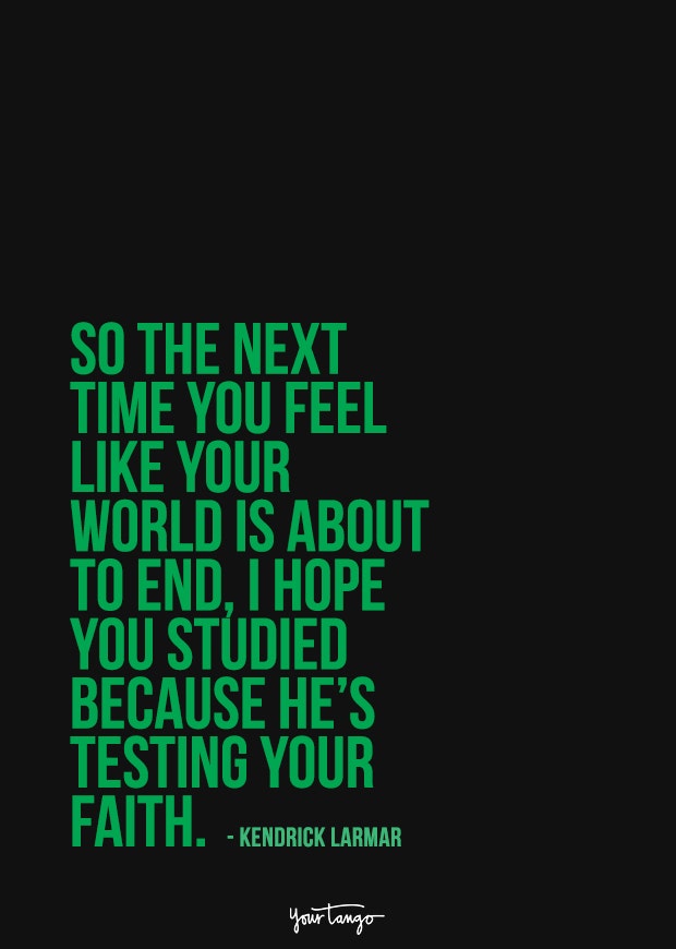 "So the next time you feel like your world is about to end, I hope you studied because he's testing your faith." — Kendrick Lamar