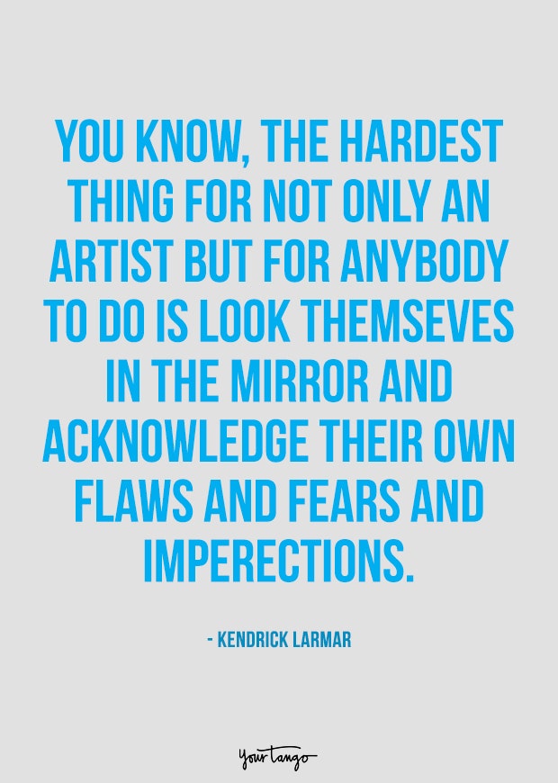 "You know, the hardest thing for not only any artist but for anybody to do is look themselves in the mirror and acknowledge their own flaws and fears and imperfections."— Kendrick Lamar