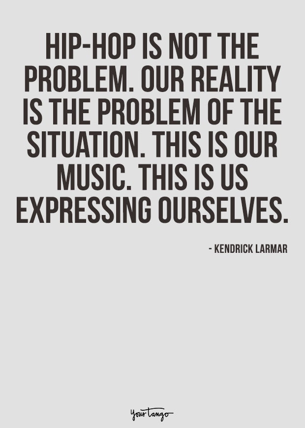 "Hip-hop is not the problem. Our reality is the problem of the situation. This is our music. This is us expressing ourselves."— Kendrick Lamar