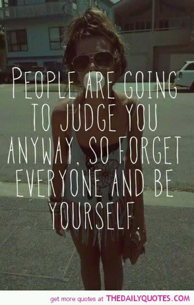 “People are going to judge you anyway, so forget everyone and be yourself.”-Anonymous