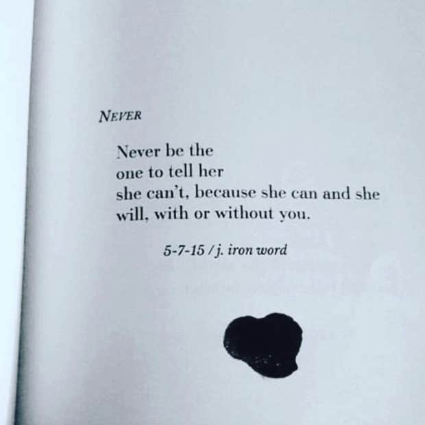 “Never be the one to tell her she can’t, because she can and she will, with or without you.”—J. Iron Word