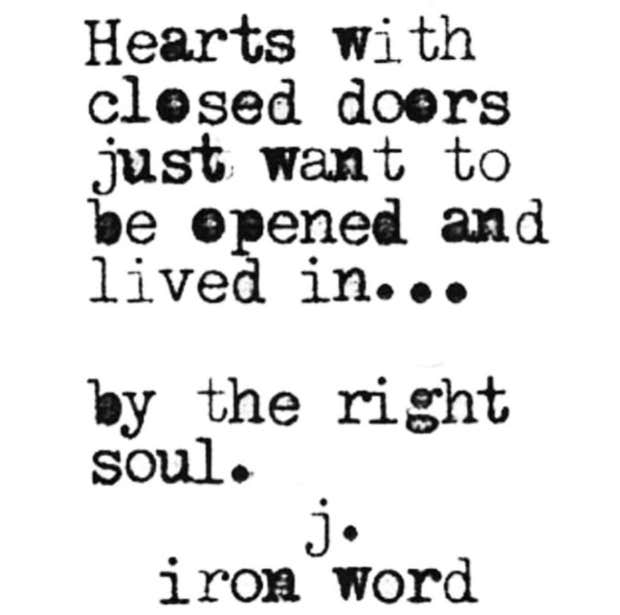 “Hearts with closed doors just want to be opened and lived in… by the right soul.”—J. Iron Word