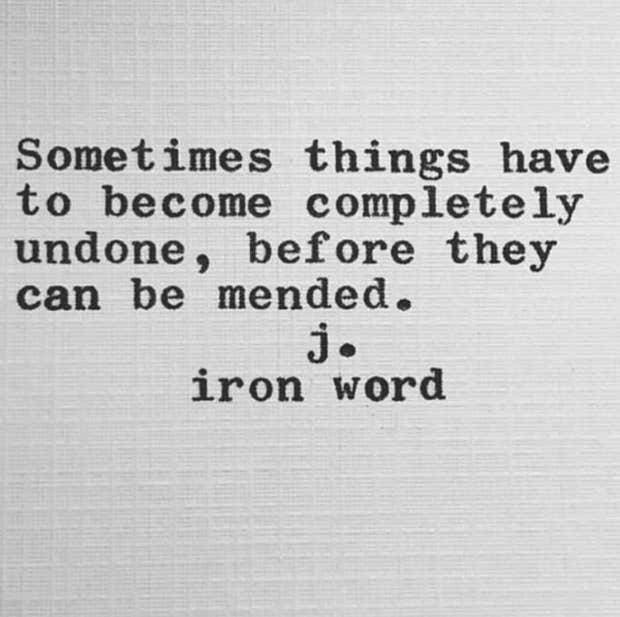 “Sometimes things have to become completely undone, before they can be mended.” — J. Iron Word