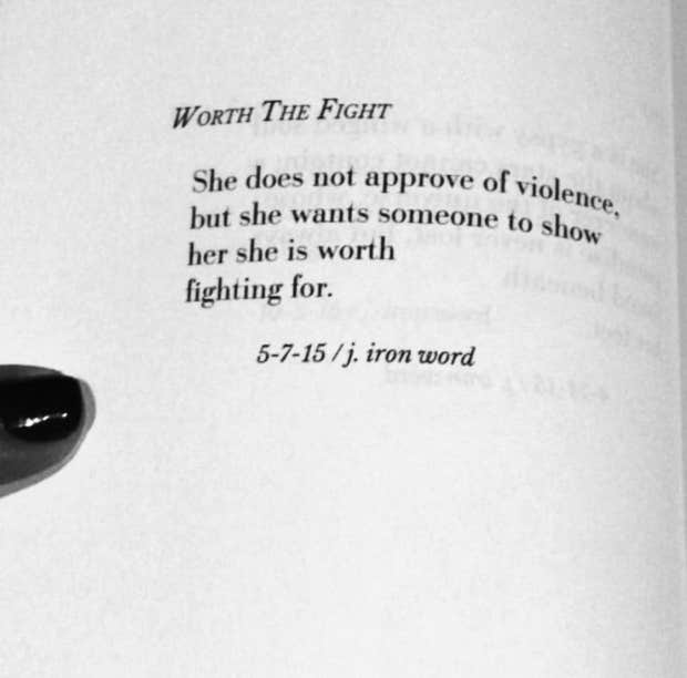“Be with someone who fights for you, someone who knows you are worth it, someone who knows love is worth it.”—J. Iron Word