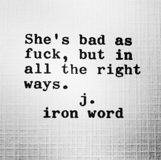 “She’s bad as fuck, but in all the right ways.”—J. Iron Word