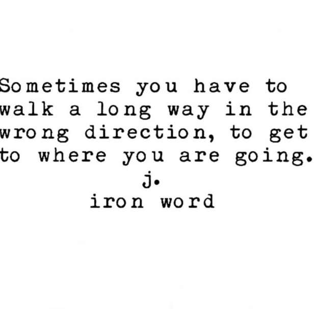 “Sometimes you have to walk a long way in the wrong direction, to get to where you are going.”—J. Iron Word