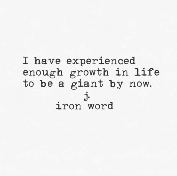 “I have experienced enough growth in life to be a giant by now.”—J. Iron Word