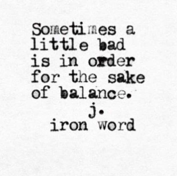 “Sometimes a little bad is in order for the sake of balance.”—J. Iron Word