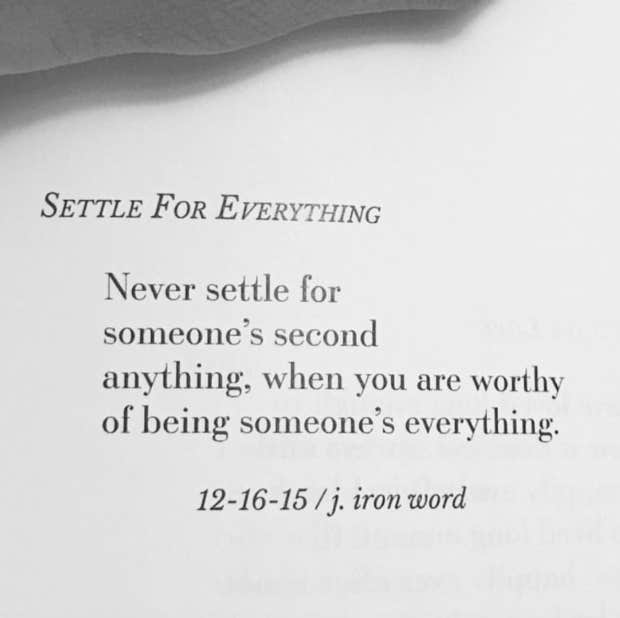 “Never settle for someone’s second anything, when you are worthy of being someone’s everything.”—J. Iron Word