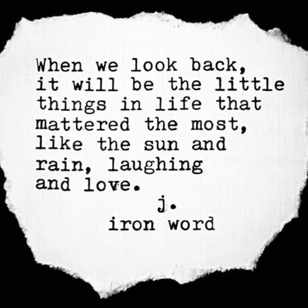 “When we look back, it will be the little things in life that mattered the most, like the sun and rain, laughing and love.”—J. Iron Word