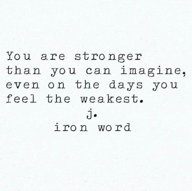 “You are stronger than you can imagine, even on the days you feel the weakest.”—J. Iron Word