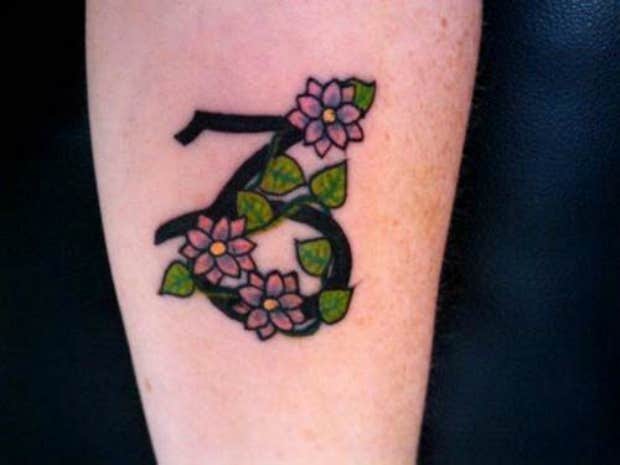 Everyone loves flowers! But instead of exchanging the stars in a constellation tattoo with flowers, you can wrap some flowers around the Capricorn symbol and get the same effect. Pretty and unique!