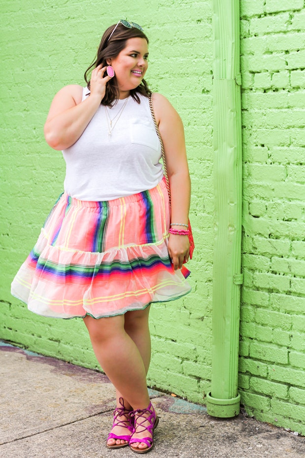 The bright colors in the skirt, along with the tassel accents on the tank top, are perfect for a Cinco de Mayo outing.