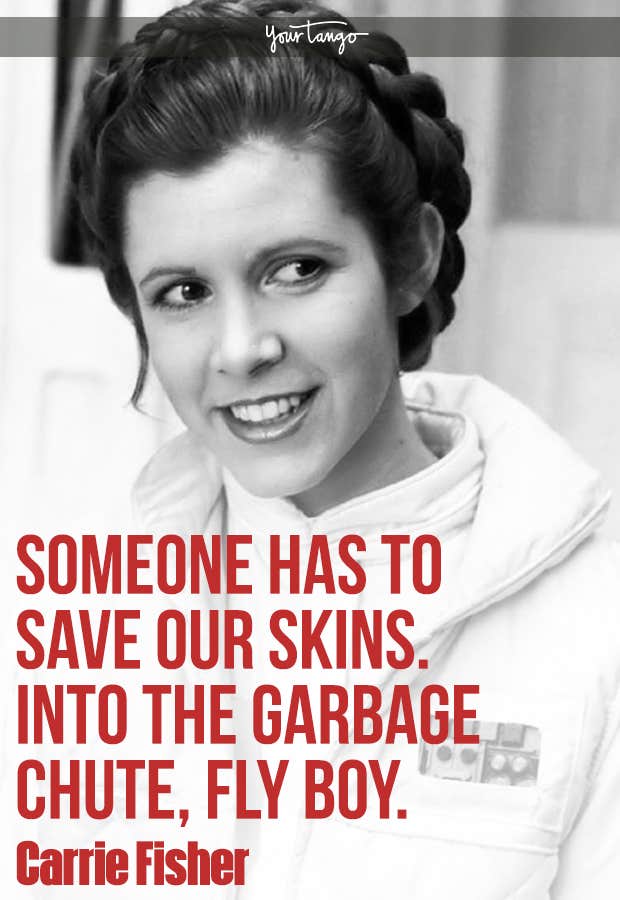"Someone has to save our skins. Into the garbage chute, fly boy."— Carrie Fisher (as Princess Leia)