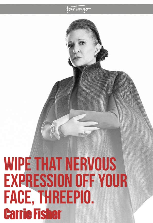 Wipe that nervous expression off your face, Threepio."— Carrie Fisher (as General Leia Organa)