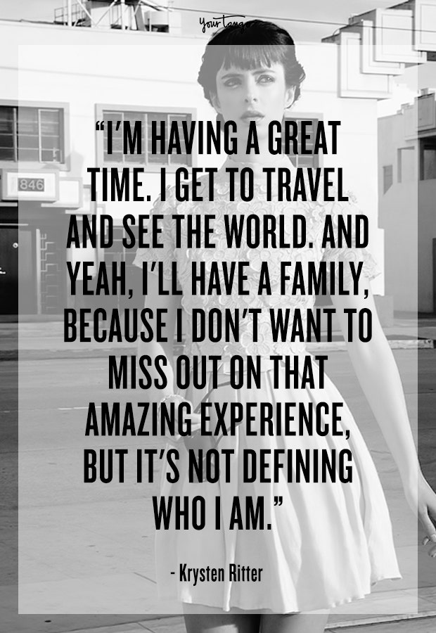 “I'm having a great time. I get to travel and see the world. And yeah, I'll have a family, because I don't want to miss out on that amazing experience, but it's not defining who I am.” — Krysten Ritter