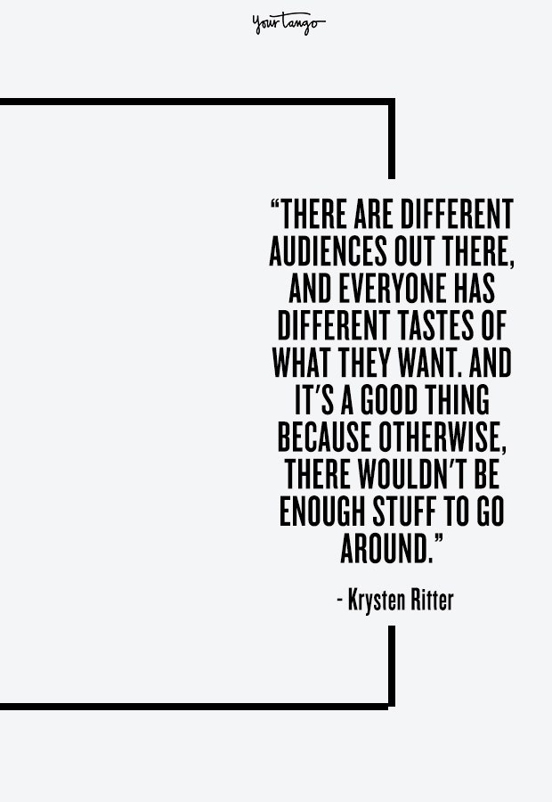 “There are different audiences out there, and everyone has different tastes of what they want. And it's a good thing because otherwise, there wouldn't be enough stuff to go around.” — Krysten Ritter
