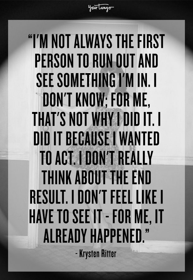 “I'm not always the first person to run out and see something I'm in. I don't know; for me, that's not why I did it. I did it because I wanted to act. I don't really think about the end result. I don't feel like I have to see it - for me, it already happened.” — Krysten Ritter